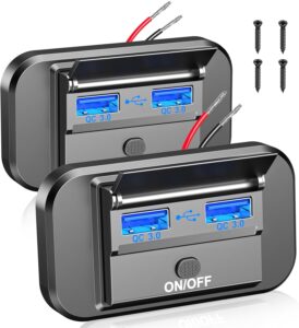 2 Pack 12V USB Outlet Dual Quick Charge 3.0 Car USB Ports: 12 Volt Power Outlet USB Panel Wall Mount Car Charger Socket for Marine RV Motorcycle Boat Car Truck, etc. (Surface Mount Installation)