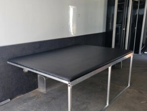 Featuring a 1″ foam pad and strong vinyl covering these beds fold up nicely to the wall of your trailer for transporting and fold down for use as a bench, bed or anything else.